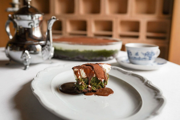 В рамках ежедневных бранчей тут подают тирамису по мотивам — с фисташковой пастой.