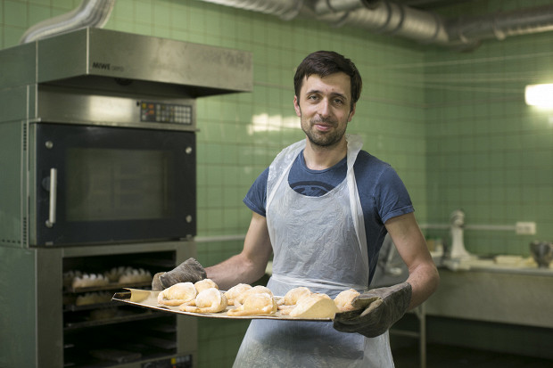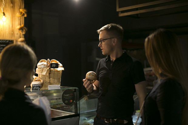 «А калачи, — рассказывает Кирилл, — мы придумали не в России, нас осенило вдруг в Гамбурге. Мы там ели брецели с сыром и ветчиной и подумали: почему у нас ничего такого традиционного нет? И что у нас вообще такое есть свое, куда можно положить начинку? Захотели сделать русский стритфуд, чтобы можно было максимально быстро, без слоистых историй, отдать продукт покупателю. Вспомнили и сайки, вспомнили и калачи. То, каким должен быть калач, мы оттачивали полтора года: граммовку, состав, пористость, внешний вид. Нам важно было, чтобы у него была хорошая пористость, чтобы мякиш не был таким тяжелым, как традиционный, — начинка должна его пропитывать и делать калач вкуснее. Начинки тоже подбирали долго; утверждали, потом снова — нет, давай по-другому».