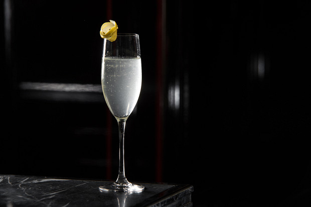 French 75: 30 мл сухого джина, 90 мл игристого, 20 мл сахарного сиропа, 20 мл лимонного сока. Налить в шейкер лимонный сок, сахарный сироп и джин. Добавить лед и взбить. Перелить через стрейнер в охлажденный бокал. Долить шампанского и перемешать ложкой.