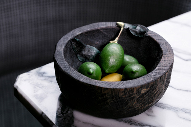 Остроумная шутка, придуманная кондитером Наирой Соседовой, которая несколько лет держится в хитах продаж итальянского ресторана: горсть оливок, нарочито небрежно брошенных в деревянную миску. Отличить эти «оливки» от настоящих можно только на вкус: кожица сделана из белого и молочного шоколада с оливковым маслом extra virgin, мякоть с карамельным сливочным вкусом — из крема на основе жженого шоколада, а косточка — из миндаля, выдержанного в вишневом соке.
