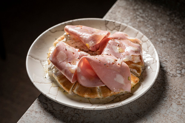 Сегодня индекс ее цитирования в ресторанных меню зашкаливает. Главная среда обитания мортаделлы — сэндвичи, в них тонкие розово-белые лепестки колбасы красиво укладывают в десяток слоев. Но также салаты, пицца, начинки для круассанов, а скрэмбл с мортаделлой в меню завтраков вытеснил болтунью с колбасой. Причины понятны: во-первых, мы все соскучились по Италии, во-вторых, мортаделла отечественной выделки приблизилась к итальянской рецептуре. И хотя позиционируется как премиальный продукт, но стоит дешевле, чем, к примеру, хамон, и производить ее на отечественном сырье гораздо сподручнее, чем пармезан. На снимке — пита с мортаделлой из ресторана Share.