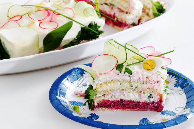 Бутербродный торт, обязательная программа почти каждого праздничного шведского стола. По значимости примерно то же, что наш салат оливье.