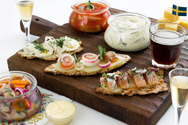 Праздничная комплексная шведская еда, название расшифровывается так: sill (селедка), ost (сыр) и snaps (снапс, или шнапс, то есть традиционная шведская водка).