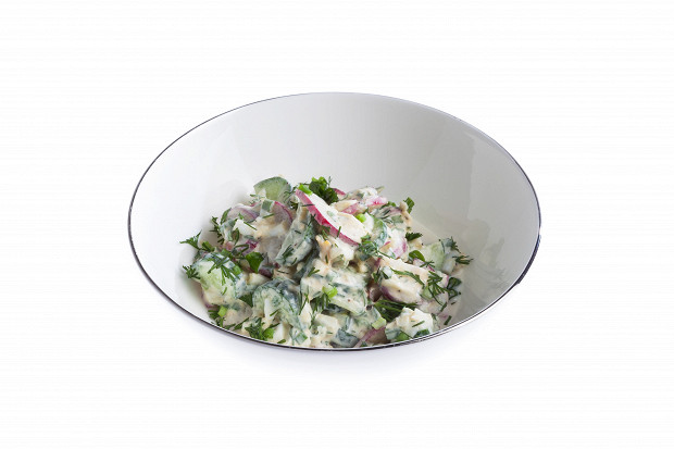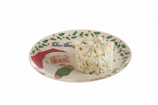 Надежное сочетание яблок, сельдерея, консервированного ананаса и грецких орехов. Семейный рецепт телеведущего Владимира Маркони.