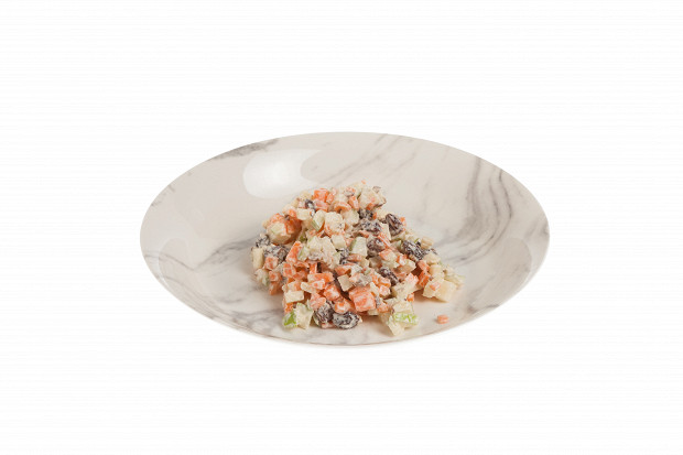 Еще один семейный рецепт телеведущего Владимира Маркони: морковь, яблоки, грецкие орехи и изюм, соединенные сметаной.