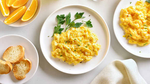 «Скрэмбл готовят на средней температуре, а яичная смесь постоянно перемешивается, пока не превратится в нежную однородную массу. Идеальный рецепт скрэмбла, на мой взгляд, такой».