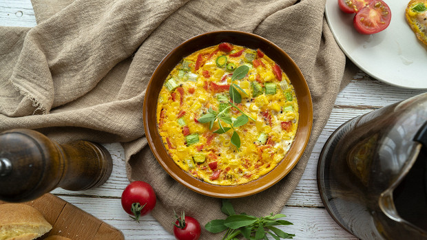 «Омлет же готовят на хорошо разогретой сковородке, под крышкой, а в яичную смесь добавляют немного молока, сливок или сметаны. Мы считаем идеальным этот рецепт».