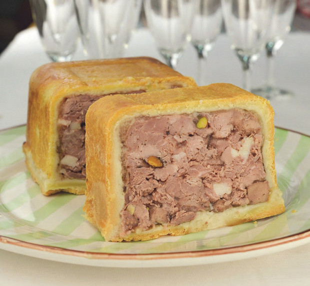 В ход шло не столько мясо (его-то как раз использовали в более деликатесных блюдах), сколько субродукты — ливер, печень, а также говяжьи хвосты и свиные уши, вполне съедобные, если их немного потушить. То есть французский термин «патэ», или по-русски «паштет», изначально подразумевал именно что-то вроде мясного пирога с разнокалиберной начинкой. Причем фарш необязательно должен быть гладким, как масло, паштеты с «включениями» особенно нарядно смотрятся на срезе. Есть такая логика — чем больше вы хотите подчеркнуть вкус того или иного продукта, тем крупнее его нарезаете, и наоборот, всякий «балласт» в фарш для паштета измельчается в кашу.