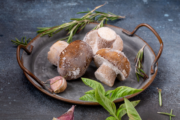 Замораживать грибы лучше в герметичных упаковках и небольшими порциями, а не большим куском — это позволит избежать повторной разморозки/заморозки и окисления грибов. Идеально — это удалить лишний воздух из пакета, например с помощью вакууматора. Температура морозилки должна быть не ниже –18 градусов. Хранить замороженные грибы рекомендуют максимум в течение года.
