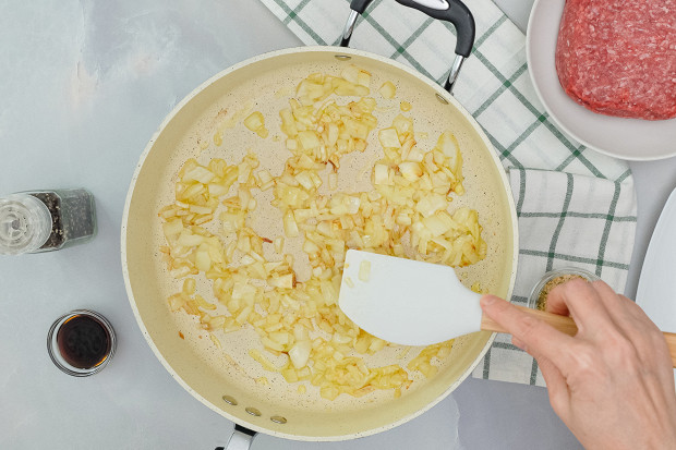 Лайфхак: Лук прожарится быстрее, если посолить его в самом начале приготовления. Только не забудьте об этом, когда будете добавлять лук в готовое блюдо – есть риск пересолить.