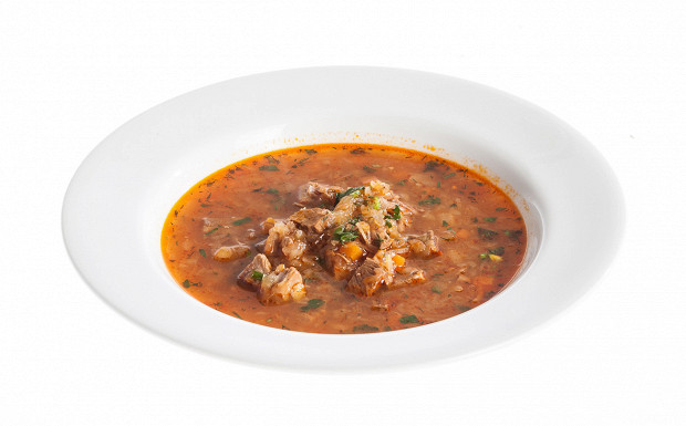 За навар тут отвечает говяжья грудинка, за вкус — целый арсенал кореньев, добавленный в бульон: морковь, сельдерей, репа и пастернак. Технология — максимально близкая к той, что описана выше. В целом идеальная зимняя еда: согреет, насытит и станет отличной закусью к водке.