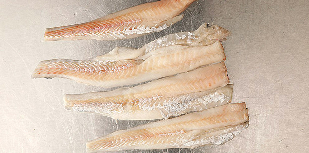 Если же вы купили прессованное филе, которое продается квадратиками, то это кот в мешке. Оно может быть как хорошего качества, так и безобразного. И понять это можно только дома. Поэтому мой вам совет: аккуратно, не спеша, разморозьте его в холодильнике, а потом жарьте в кляре — сначала обваляйте в муке, посыпьте солью и перцем, затем окуните во взбитое яйцо, а после еще обваляйте в каких-нибудь сухариках, либо снова в муке. Эта крепкая оболочка будет держать рыбу и не даст ей развалиться. В таком филе, как правило, много жидкости — отжимать ее не стоит. Корочка из яйца и муки получится довольно плотной, она не выпустит жидкость наружу, и рыба получится нежной и сочной.