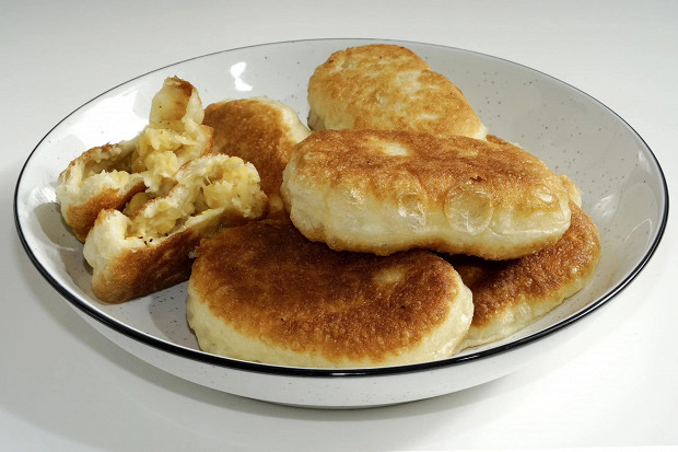 Идеальная еда родом из детства и прочная ассоциация с каникулами на русском юге. Горох тут превращен в густую кашу, приправленную жареным луком. И, сложившись с тестом, эта масса становится основательной, вкусной и сытной начинкой.