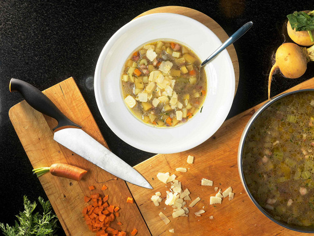 Суп-пюре из корнеплодов — понятная всем еда. Вспомните бабушкины супы: картошка, морковь, лук, свекла — все это превращается либо в борщ, либо в суп-пюре, либо в какой-то другой суп. Но вряд ли наши бабушки поголовно подготавливали овощи специальным образом. Например, запекали корнеплоды перед погружением в суп или и вовсе коптили их. Фокус с предварительным копчением овощей, который дает супу невероятно яркую ноту, Виталий демонстрирует нам во втором уроке, где также рассказывает, как готовить другие интересные супы: венгерский суп-гуляш и куриный суп с лапшой.