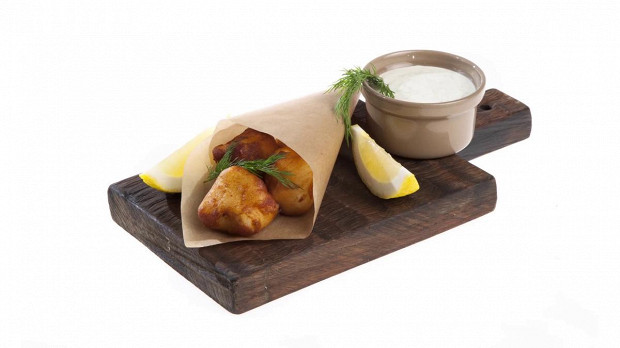 Для кляра хорошо брать рыбу с нейтральным вкусом — морскую или речную. Если возьметесь готовить речную, то пусть это будет судак — базовый рыбный вкус, полный и тихий. Виталий Тихонов погружает его в кляр из пшеничной муки, кефира, лимонного сока и минералки, чтобы потом подать с пахучим чесночным соусом. Представьте, что рыба эта стоит посреди стола, а вокруг кружки холодного пива или запотевшие бутылки вина.