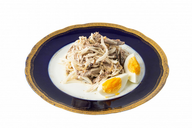 Самая запутанная история именно с этим эталонным блюдом еврейского кулинарного фольклора. Вроде бы мелкорубленая селедка — гордость кухни восточноевропейских евреев ашкенази. Но как быть с тем, что слово «форшмак» происходит от немецкого vorschmack — «перед едой». В старопрусских рецептах форшмаком действительно называлась закуска, которая могла быть и запеканкой, и холодцом, и чем-то вроде паштета из потрошков и остатков мясной туши. В этом виде форшмак и был известен в России в XIX веке: «Голова воловья употребляется на студень для беднейшего класса людей… Когда это мясо при костях сварится, употребить на форшмак или отдать прислуге». Впрочем, форшмак — это не только еда для бедных. Форшмак был любимым блюдом маршала Маннергейма (историки помнят печально известную «линию Маннергейма»). Считается, что впервые будущий военачальник и президент Финляндии попробовал форшмак в ресторане при отеле «Савой», когда был кадетом Николаевского кавалерийского училища в Санкт-Петербурге. Там форшмак готовили причудливо — из запеченного телячьего фарша с соленой хамсой. Почти итальянское вителло тоннато. Еврейские хозяйки такой роскоши позволить себе не могли, поэтому вольно заменяли хамсу на селедку, а вместо телятины придавали блюду «тело» при помощи вареного яйца. За что мы им сегодня благодарны.