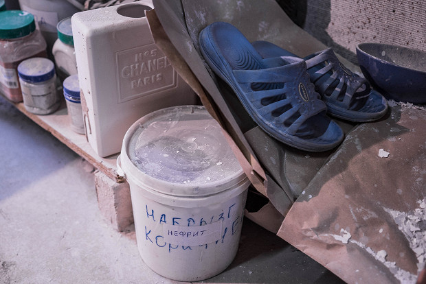 Оправленная посуда переходит в другой конец цеха, к Тане. Она работает с керамикой уже 17 лет. Говорит, судьба у нее такая — быть художником-самоучкой, как впервые столкнулась с керамикой, так и не смогла бросить это дело ради чего-то более перспективного. Впрочем, заказы от Лолиты и Тимура позволяют ребятам зарабатывать неплохие деньги (работа оплачивается сдельно), к тому же она креативная и нескучная, и неудивительно, что за полтора года все сроднились.