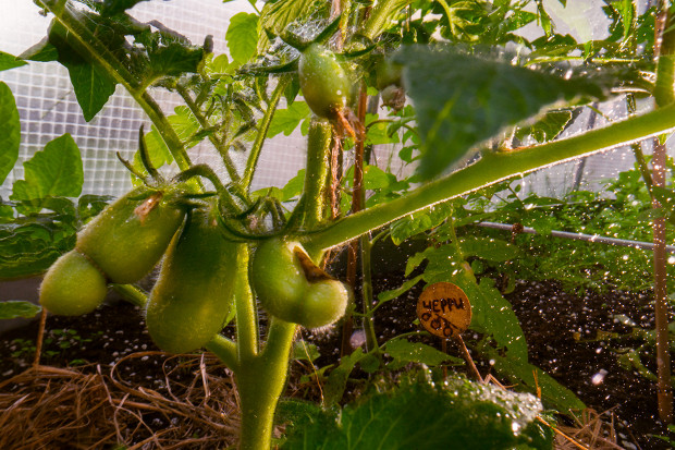 Теплица вообще оказалась в нашей затее с огородом слабым звеном. У нас и так на участке немного солнца, все закрывают соседние здания и мощные тополя. А в теплице растениям света не хватает катастрофически, тем более что мы не рассчитали, и высокорослые растения посадили так, что они застят свет всякой мелочи, — в результате тепличные морковки, томаты и редиски или растут слишком медленно, или, наоборот, уходят в рост, отращивая слишком высокие стебли, чтобы поймать хоть немного солнца. Даже помидоры, которые чувствуют себя неплохо и уже завели маленьких помидорчиков, все-таки вытянулись слишком сильно. Поэтому просто бамбуковые палочки, воткнутые в землю, уже не помогают им устоять. Пришлось их вдобавок подвязывать, закрепляя веревочки прищепками. Теперь наша теплица похожа на двор, где сушится белье.
