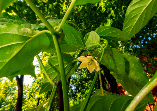Тем, кто интересовался судьбой нового сладкого перчика, который мы нашли вместо «коронного плода» Пепе, сообщаем: с ним все отлично, он еще вытянулся, слегка потолстел и начал потихонечку краснеть. А на соседних кустах мы нашли несколько маленьких острых перцев — это точно не коронные плоды, мы проверяли. А еще у нас начала плодоносить земляника, одна ягода даже уже покраснела. Это очень приятно, потому что клубника так толком и не зацвела и в этом году вряд ли уже зацветет. А еще у нас зацвел баклажан — и это очень красиво: яркий фиолетовый цветок, а внутри вот-вот должен появиться маленький баклажанчик. Чудо!