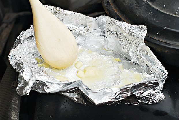 2. Из фольги сделали формочку, загнув со всех сторон края, положили ее на радиатор и растопили в ней сливочное масло.