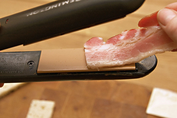 Вот, например, один из наших старых фокусов. Он получился благодаря тому, что выпрямитель, кажется, больше приспособлен для кулинарных, а не парикмахерских нужд. С производством миниатюрных аккуратных сэндвичей, например, он справляется отлично.