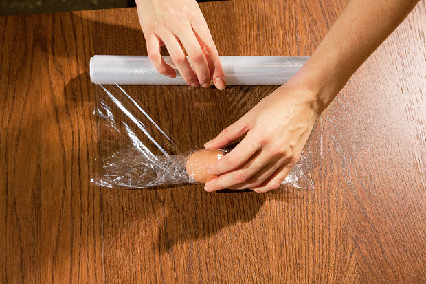 2. Каждое яйцо плотно обернули пищевой пленкой, чтобы скорлупа не треснула на морозе и содержимое яйца не вылилось.