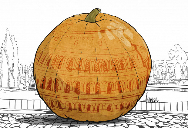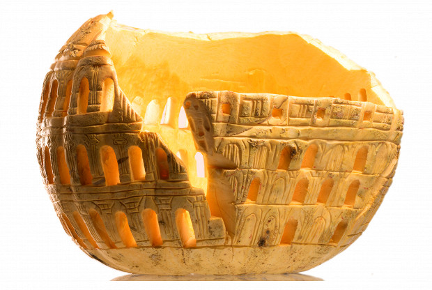 Когда в редакцию позвонил наш коллега Дмитрий Бойко и предложил нам забрать пару больших тыкв с его хозяйства (о нем мы уже писали здесь), мы сразу поняли, что с ними делать. Конечно, вырезать, тем более Хеллоуин на носу. Решение, во что превратить тыкву, пришло, как только мы ее увидели. 30 кг тыквы, чуть скошенной с одного края, — это не шуточки, и откинув самую очевидную идею про карету, мы поняли, что быть тыкве Колизеем.