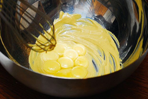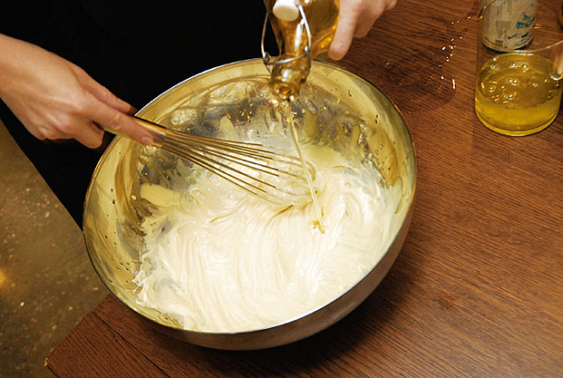 3. В получившуюся смесь осторожно вливали по каплям масло, постоянно взбивая, чтобы добиться эмульгирования масла.