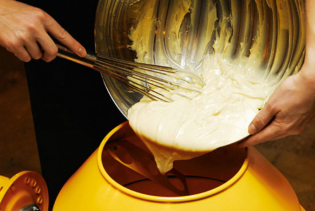 4. Произведенное таким образом небольшое количество майонеза перелили в бетономешалку.