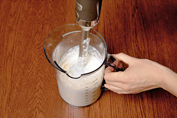 3. Миксером взбили сливки с сахарной пудрой, желтком и ванильным сахаром.