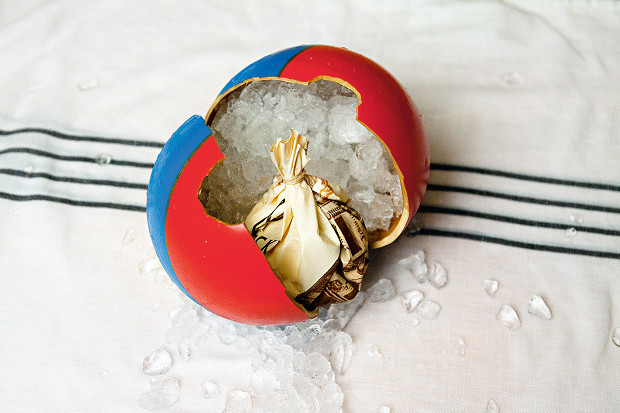 8. Наигравшись, вскрыли ножницами мяч и вынули мешочек с готовым мороженым.