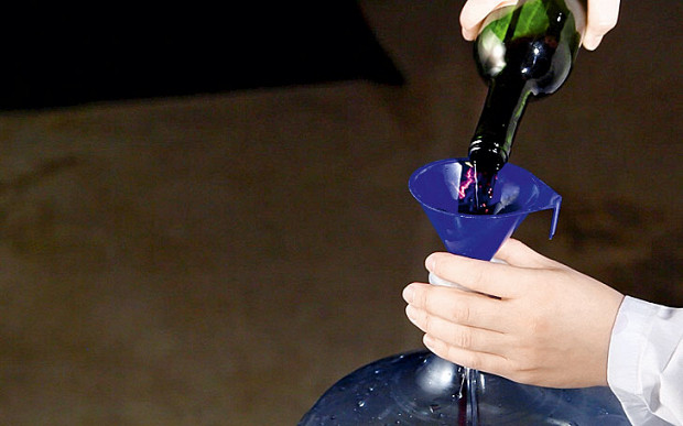 3. В день вечеринки мы взяли пустую емкость из-под воды и через воронку влили в нее все имевшееся вино.