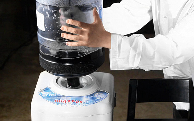 6. После чего водрузили бутыль с винным содержимым на основание кулера, как будто бы это была просто вода.