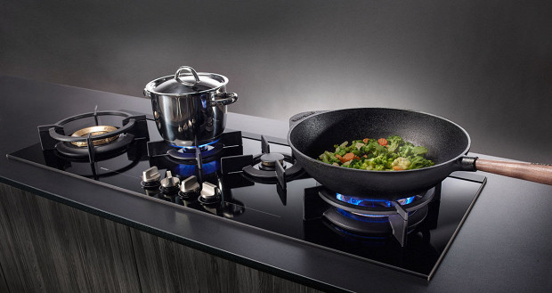 Похожие приспособления придуманы и для домашнего использования: можно купить отдельную специальную газовую конфорку, можно — индукционную мини-плиту, а можно приобрести газовую варочную панель, на которой уже установлена конфорка с несколькими радиусами пламени, на которой вок устойчиво держится и равномерно нагревается.