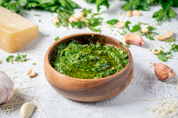 Соус песто — главный продукт в этом наборе. Попробовала я его лет 15 назад, и это был взрыв гастрономического сознания. Я быстро поняла, что его можно не только есть с хлебом, но и добавлять практически во все, что я люблю есть, за исключением разве что десертов.