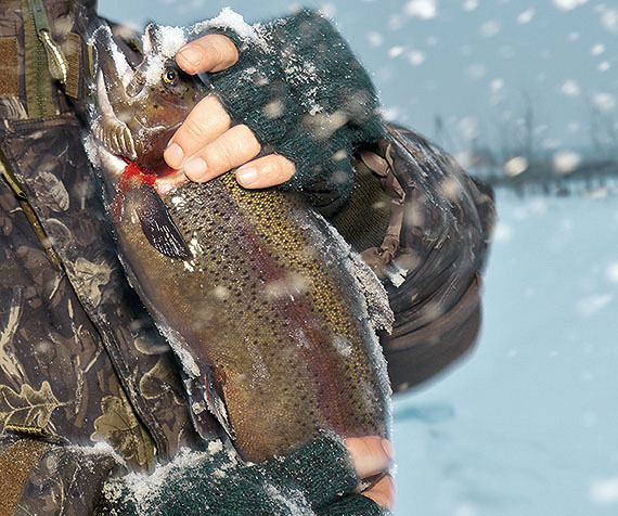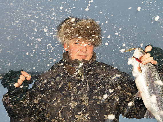 В этот момент у ее мужа Владимира клюнуло. Он привычным движением потащил улов наверх. Рыба дергалась на снегу, как пьяный брейкер. Рыбак прижал ладонью тушку: танец окончен. Достал строительные пассатижи и каким-то стоматологическим движением извлек крючок из пасти форели. Будто выдернул зуб мудрости. Рыба подергалась, будто по ней прошел электрозаряд дефибриллятора, и замерла.
