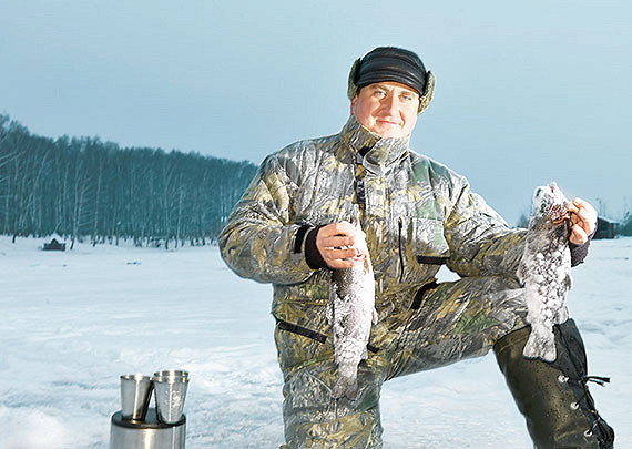 — Володя первый раз с нами рыбалит, поэтому не успел переодеться, — шутят рыбаки.