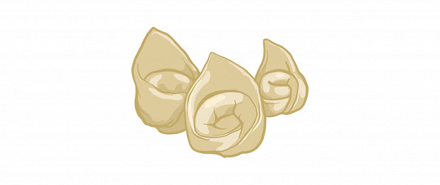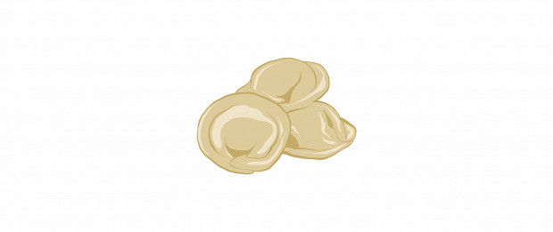 Итальянские пельмени из Эмилии-Романьи. Внешне — наши пельмени, но очень мелкие (диаметром примерно 2–3 см) и с уголком (потому что тесто нарезается на квадраты, а не кружки). Как и в равиоли, начинки в тортеллини мало, в основе всего — вкусное яичное тесто. Готовят тортеллини с мясом, овощами и, конечно, сыром. Подаются с бульоном или с соусами. Есть еще тортеллони — большие тортеллини.