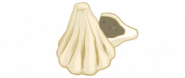Небольшие паровые пельмени, по форме и смыслу больше напоминающие пирожки. Их готовят из пшеничного дрожжевого теста с начинкой из свиного фарша с капустой (традиционно) и едят руками.