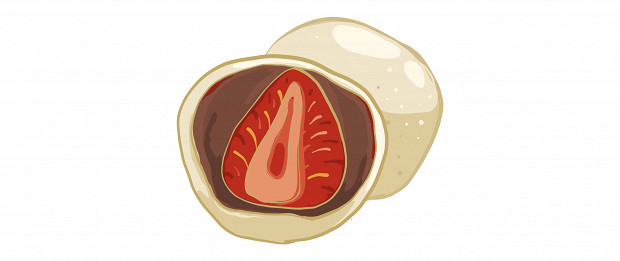 Японские рисовые лепешки, обычно с анко — пастой из бобов фасоли адзуки. Или довольно крупные — размером с ладонь, или небольшие — до 3 см в диаметре. Внутрь заворачиваются цельные или перетертые фрукты — получаются что-то вроде пирожков. Они посыпаются сахарной пудрой или какао. Популярный японский десерт.