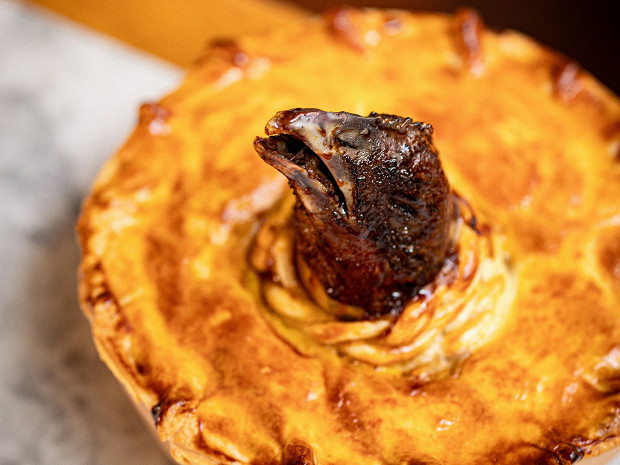 Француз Пьер Кофман выступил в этом году в качестве приглашенного шефа уважаемого лондонского ресторана Fоwl и изрядно поиграл на нервах его завсегдатаев, представив необычное куриное меню. Идея за ним стоит самая благородная — использовать все части птицы, «от лап до гребешка», чтобы отдать должное нелегкому труду птицеводов. Но результат многих шокировал: мало того что в корн-дог вместо палочки была продета когтистая птичья лапка, так еще и гвоздем программы стал пай с потрохами, из которого торчала мертвая куриная голова со всеми положенными причиндалами: клювом, глазами и остатками перьев. Обедать под мертвым взглядом не всем посетителям было уютно, поэтому за заказ пирога ресторан даже давал скидку на остальное меню. К блюду прилагалось пояснение, что при желании голову можно достать и просто отложить на тарелку, но лучше, дабы поддержать концепцию разумного потребления, сгрызть и обсосать косточки, оставив только клюв. Сколько народу решилось употребить в пищу необычный декор, история умалчивает.