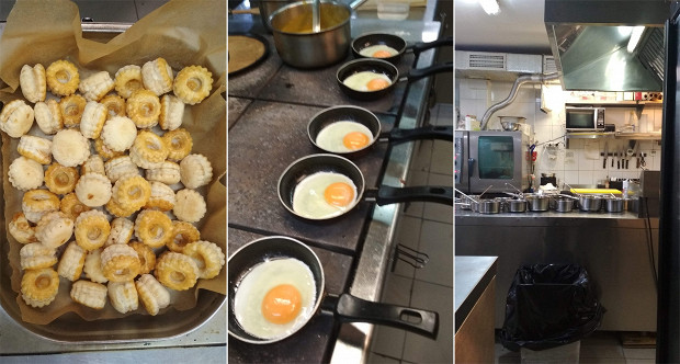 Все никак не получалось у меня прийти на работу пораньше, сегодня собралась и пришла к 14, ушла в 22 — провела 8 часов на кухне, получается. Устала, но теперь я понимаю, что в целом это реально. Нет такого, что ты постоянно что-то делаешь, есть очень тихие моменты, когда просто сидишь и работы нет.