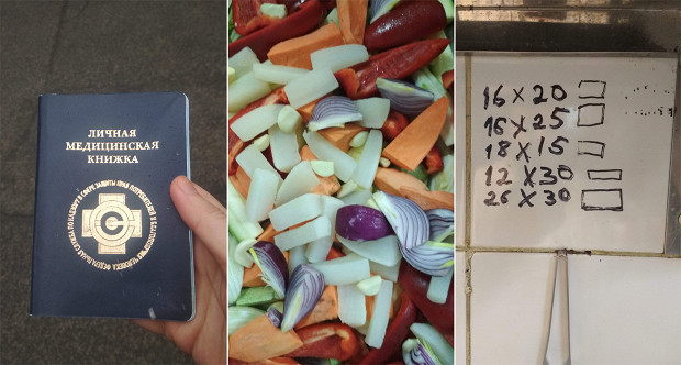 На кухне приняли дружелюбно. Почти все работники — парни из Средней Азии, частенько общаются между собой на своем языке, но и по-русски хорошо. Меня сразу взял на поруки, видимо, самый активный и дружелюбный парень-заготовщик. Я за него поделала какую-то работу, а он, видимо, ничего не делал, не знаю!