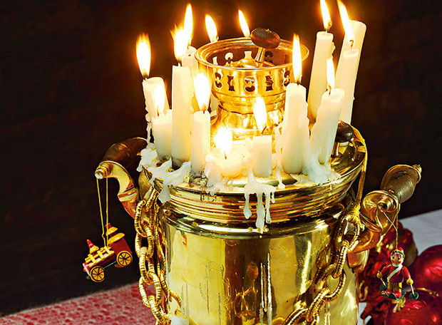 Куранты, например, могут переместиться со стены на стол на столе, роль снега легко исполняет соль, рога так и просятся стать таинственным деревом, а главным персонажем может оказаться самовар в качестве подсвечника.