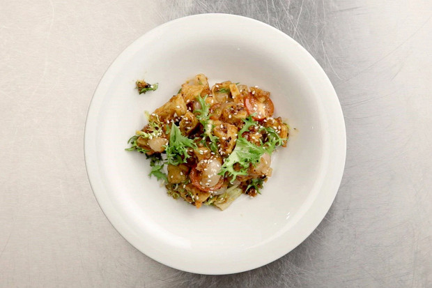 Традиционное новогоднее угощение. В рыбе, поданной целиком, стараниями повара не остается ни одной косточки, а мякоть вздыбливается, как шерсть испуганного зверька. Остро-сладкий соус — обязательного красного цвета, а карп в Китае всегда был символом процветания. Не забудьте сохранить одну из чешуек-монеток — китайцы верят, что это к деньгам.