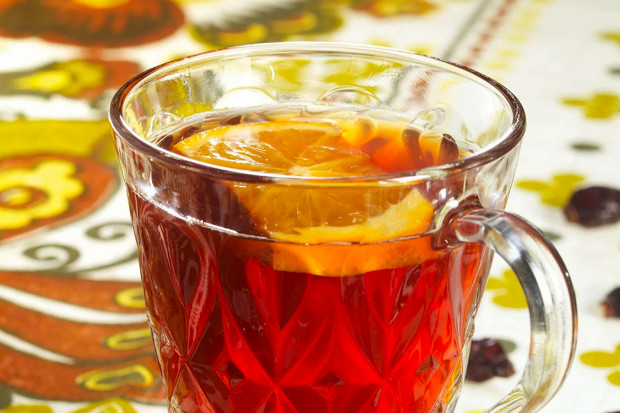 Идеальный напиток для зимней прогулки. От шиповника в нем терпкость, от апельсина — вкус, а от меда — сладость. Все вместе, если заваривать их не кипящей, а слегка остывшей водой и дать настояться, дают впечатляющий запас аскорбинки. И пить такой настой гораздо приятнее, чем шиповник в чистом виде. Если торопитесь выйти из дома, то можно пожертвовать (но не критично) пользой и предварительно измельчить плоды. Это сократит время настаивания до двух часов.
