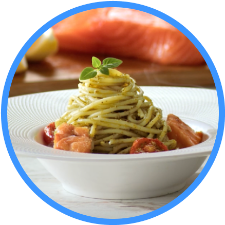 Спагетти Barilla с песто Дженовезе и лососем