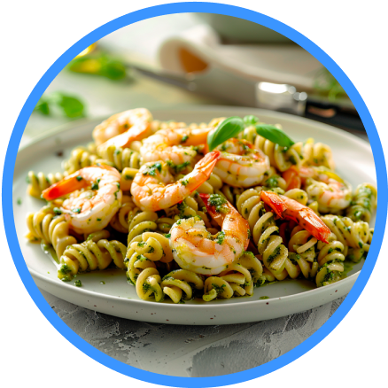 Паста Barilla Фузилли — превосходный компаньон для соусов, ведь за счет своей закрученной формы она идеально удерживает любой из них. А креветки составят отличную компанию ароматному песто с итальянским базиликом.