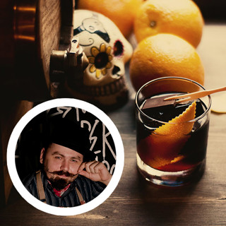 2Влить вермут, кампари, мескаль и текилу. Перемешать барной ложкой.