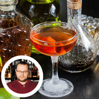 2Влить виски и вермут, капнуть ангостуры. Перемешать барной ложкой.